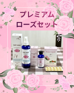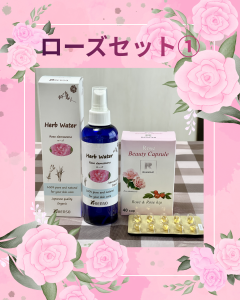 ①ローズウォーターとローズカプセルのセット